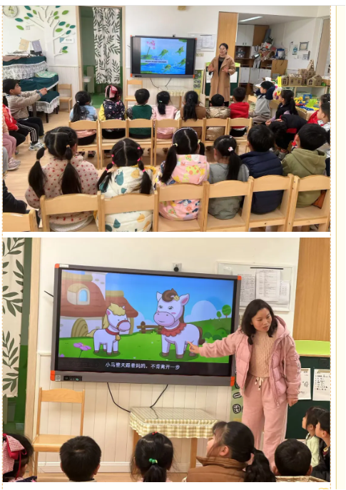 太阳1班 戴俊鑫妈妈《小蝌蚪找妈妈》、田子杨妈妈《小马过河》