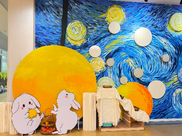 中秋节怎么少得了“彩灯”呢?孩子们踮着脚尖,憋红小脸蛋,使劲把小手往上伸,终于把彩灯稳稳挂在绳子上。孩子们还发现了小“秘密”!不信,你看!一个蓝一个白一个蓝一个白交替挂,串出了色彩的“节奏”!还有的宝贝合作挂起一串粉色彩灯,你递我挂,特别开心。