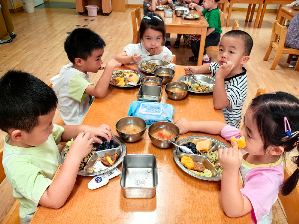 伸伸手、挑一挑,托小班宝贝的专属自助餐,热闹开餐啦!宝贝捏着迷你小夹子,小心夹起自己喜欢的食物,有的选了块黄灿灿的鸡块;还有的盯着水果,把小餐盘摆得像彩虹一样。闻着饭菜的香香味道,看着餐盘里的彩色小食,好像连幼儿园的空气里,都飘着甜甜的幸福味,连即将到来的中秋,都变得更温暖啦~