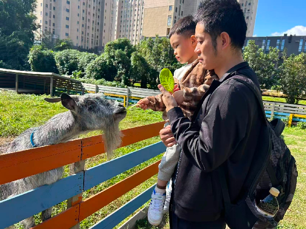 来到萌宠区,宝贝们瞬间被圈里的小兔子、小山羊、小香猪包围。大家小心翼翼地拿出提前准备好的胡萝卜条和青菜叶,轻轻递到小动物嘴边。“小兔子吃我的胡萝卜啦!”孩子们开心地拍手,眼睛里闪着惊喜的光芒。有的宝贝还学着老师的样子,温柔地摸了摸小羊的脑袋,小声说:“小羊小羊,你真可爱~”整个萌宠区充满了宝贝们的笑声和温柔的叮嘱,画面治愈又温暖。
