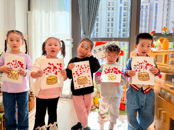 中2班的教室则变成了一个艺术创作的天堂,宝贝们用灵巧的双手制作出一份份精美的重阳节礼物。