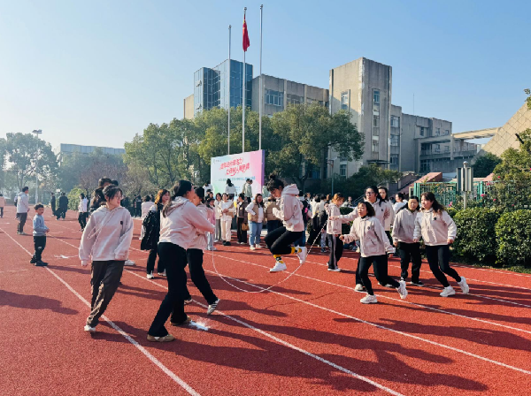 “开合,开合,开开合合!”老师们紧紧跟着口号与竹竿的节拍,双脚齐落,脸上洋溢着紧张又兴奋的笑容。当传统民俗遇上现代竞技,碰撞出的不仅是欢乐的火花,更是教育者传承与创新并重的教育智慧。