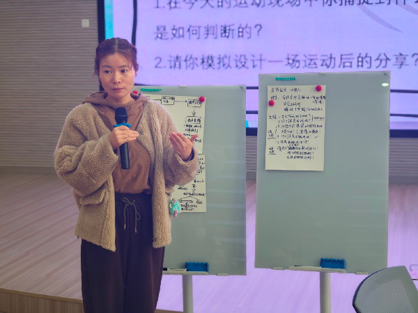 随后,沈金燕老师围绕两个核心话题“在今天的运动现场中你捕捉到什么有价值的分享点?你是如何判断的?”、“请你模拟设计一场运动后的分享”展开研讨;并聚焦运动运动分享的关键认知、运动分享中的问题、解决策略与实施要点通过研讨形成运动分享思考路径,为教师后续运动分享实践提供了可直接借鉴的操作框架,助力提升运动分享的质量与幼儿参与的深度。
