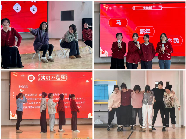 六人七足中,老师们肩并肩绑紧脚踝,喊着整齐口号稳步前行,默契协作间尽显团队力量。你演我猜里,表演者用夸张动作传递关键词,猜题者脑洞大开抢答,台下笑声此起彼伏。谁是卧底堪称“烧脑大战”,老师们凭借精准表达与敏锐观察隐藏身份、排查线索,全程紧张又刺激。copy不走样让创意层层传递,肢体模仿的偏差引发连环爆笑,欢乐值直接拉满。歌词大PK掀起全场大合唱,老师们自信开嗓、比拼记忆,熟悉的旋律让现场氛围热烈非凡。