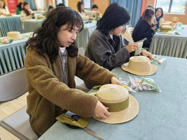 老师们在欢乐的工会活动中,以匠心赴手作之约,以繁花寄春日之思。在一顶顶花艺草帽的诞生中,大家共赴了一场诗意的节日之约,也让这份独属于女性的芳华与美好,在时光里温柔流淌