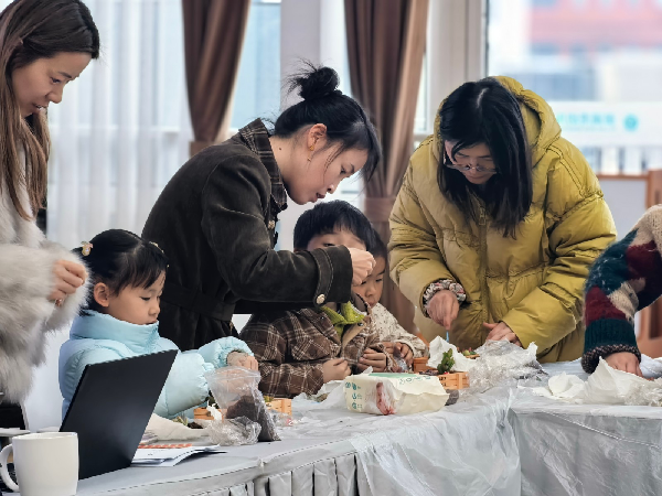 孩子们小心翼翼地用小铲子轻轻填土,用蓝沙勾勒出心中的河流;家长从旁辅助、轻声引导。当一件件亲子共创的地球小宇宙诞生时,孩子们骄傲地捧在手心,是对大自然最纯真的爱与承诺。