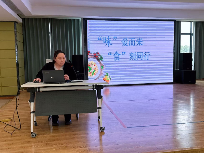 保育办副主任俞老师从专业角度全面介绍了幼儿园的膳食工作。从厨房团队的资质管理、食品安全制度、食品采购源头把控,到带量食谱的制定原则(季节适配、幼儿适配、营养均衡),再到进餐流程的规范(餐前准备、进餐过程、餐后整理),每一个细节都体现了幼儿园对幼儿健康的用心。她还介绍了幼儿园膳食监督家长委员会的架构,并强调膳食工作是一项长期而艰巨的任务,需要家园共同监督与支持。