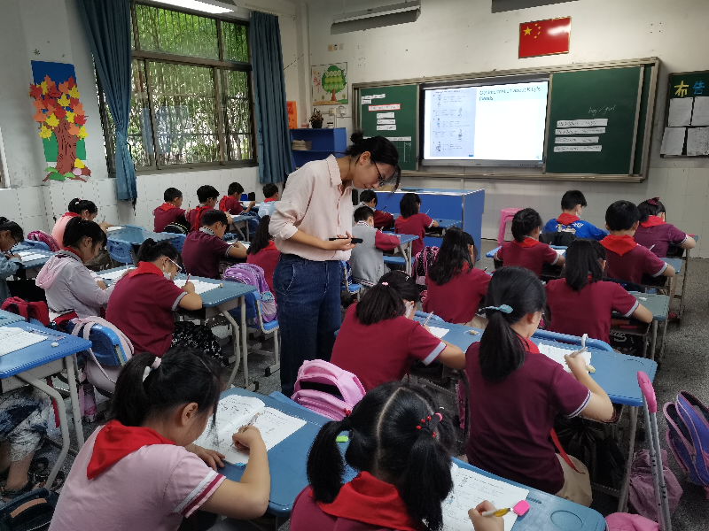 接着是随堂听课,四3班冯超群老师开放了一节英语课——《4AM1U2P2 Things my friends can do》。课后,教研员陈雪娟老师和冯老师进行了交流。同时,检查组分工查阅了城乡一体化暨优质均衡发展和未成年人思想道德建设工作两个方面的资料,进行了教师访谈和学生访谈。