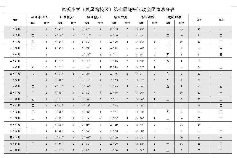 一(1)班、二(4)班、三(4)班、四(3)班、五(1)班