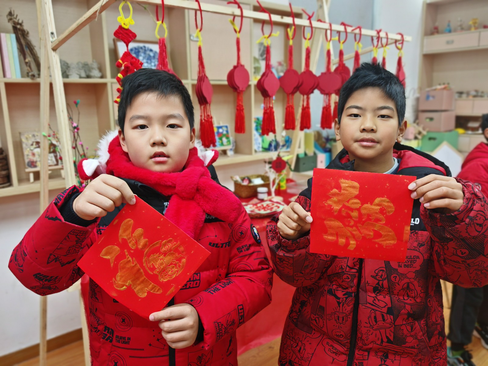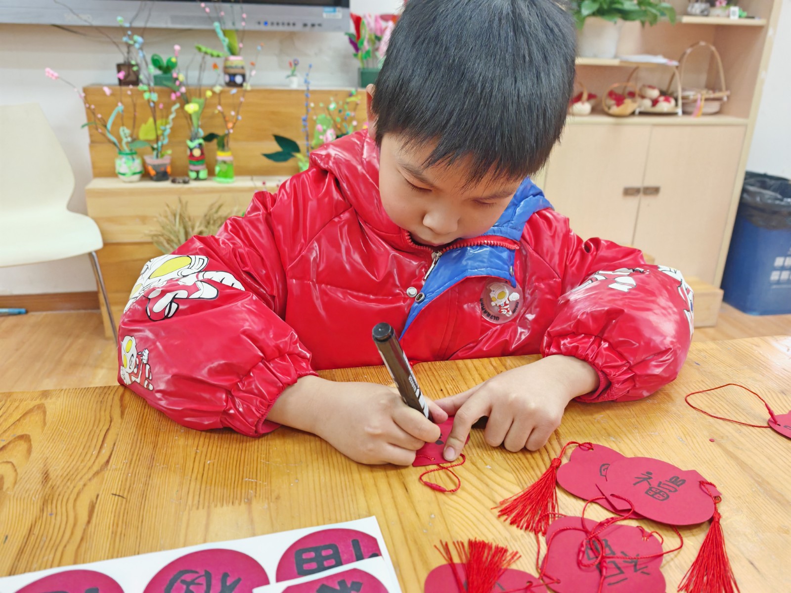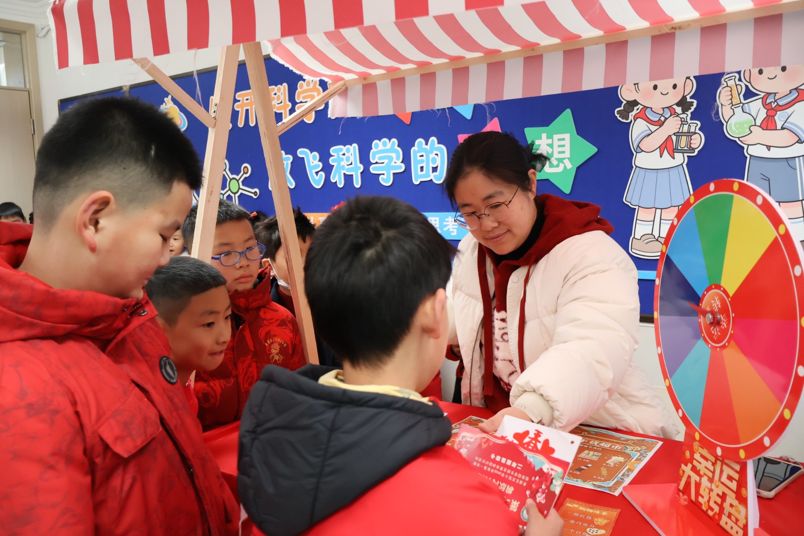 语文关秒变“年货采购摊”,拼读音节就能“买”到新年美食,在实践场景中夯实语言基础;英语“翻翻乐”里,小家伙们捧着卡片沉浸式练对话,大胆表达的同时提升语言运用能力;美术“福”印连连的摊位前挤得满满当当,每个娃都印了吉祥斗方和挂件,用画笔和印章传递新年祝福,展现审美与动手素养;数学“转转乐乐”、“消消乐”、“积木搭建”等数学游戏将计算、空间思维等知识点转化为通关密码,孩子们在动手操作中感受数学魅力;音乐“乐欢唱”的舞台上,小朋友们唱跳不停歇,把新年喜悦全唱进歌里;科学学科的“灯谜猜猜猜”摊位上,孩子们欣赏剪影猜猜动物习性,激发孩子们的观察与推理能力,感受自然科学的奥秘;“马年送‘福’”就更有意思,益智玩迷宫,每一步都有小惊喜,科普又有趣;劳动关里当“小当家”、做“手艺人”,整理书桌又剪窗花,在劳动中培养责任意识与实践技能;体育投掷、跳远赛场上同样精彩,孩子们精神抖擞、奋勇争先,展现出蓬勃的活力与强健的体魄。
