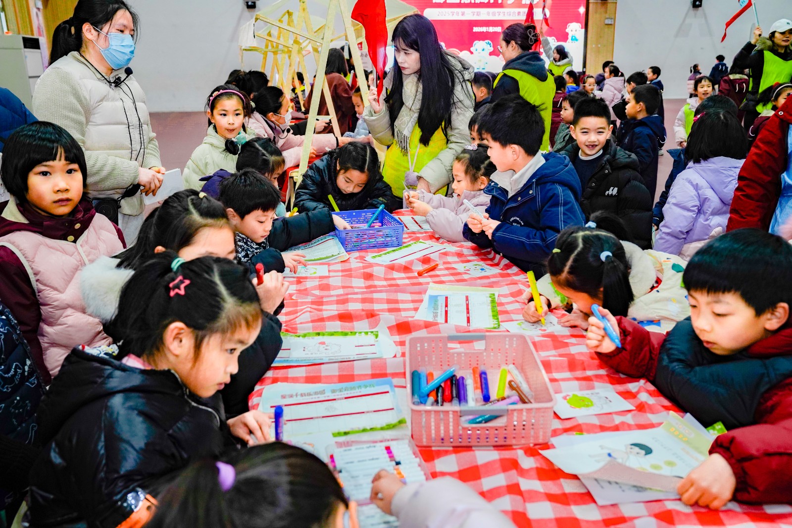 “炫彩御宝”区内,孩子们用画笔勾勒“御宝”的可爱形象,以剪刀裁制缤纷的传统窗花,更提笔挥墨,体验书法之韵。歌声与旋律在此交织,传递纯真童心。他们以多样艺术创作为媒介,尽情释放天性,展现“小艺术家”的灵动手巧与无限创意。