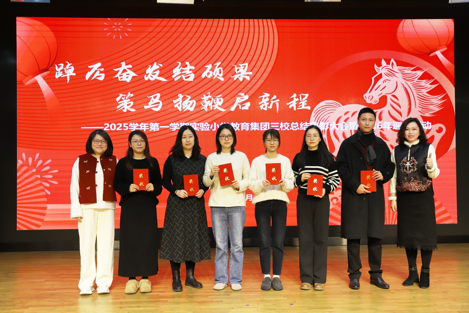 歌声袅袅,寄寓美好期许;步履铿锵,奔赴崭新征程。此次大会既是对实验小学教育集团三校2025学年第一学期工作的全面总结,也是对2026年发展的全新启航。新的一年,集团三校全体教职工将秉持“骏马奔腾志在远”的豪迈与“笃行不怠马加鞭”的干劲,凝心聚力、踔厉奋发,以骐骥凌云之姿、马步生风之态,在教育沃土上继续耕耘,续写实验小学教育集团高质量发展的崭新辉煌。老师们也将带着大会的温暖与激励,度过平安愉快的寒假,以饱满的精神状态迎接新学期的新机遇、新挑战!