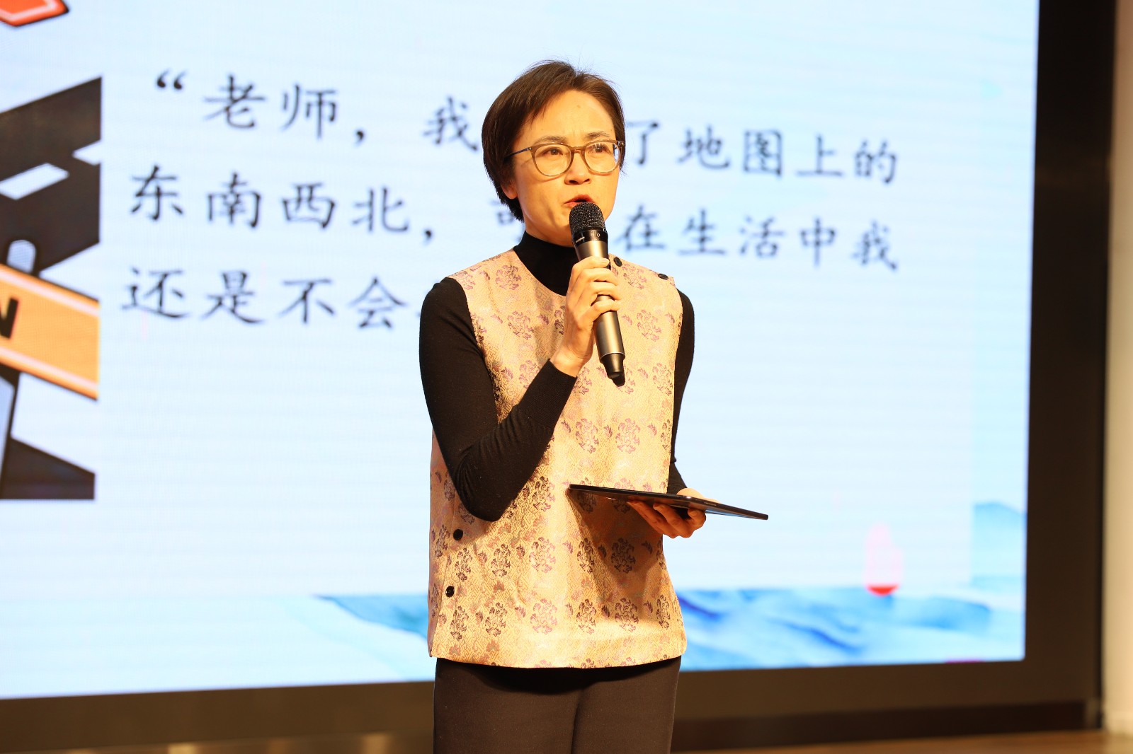 创新成果交流环节成为本次大会的亮点,豫英小学徐剑兰校长团队带来跨学科主题学习成果汇报《当数学与科学相遇》,展现学科融合的无限魅力。集团内5位数学和科学教师从“学生在生活中不会判断方向”出发,围绕两个话题“如何让知识用起来”“如何让知识活起来”交流了项目《争做校园小导游》和《制作校园模型:为一年级的弟弟妹妹介绍校园》的设计和实施过程,并就如何实现学科融合提炼了有效做法,给予老师们启发。