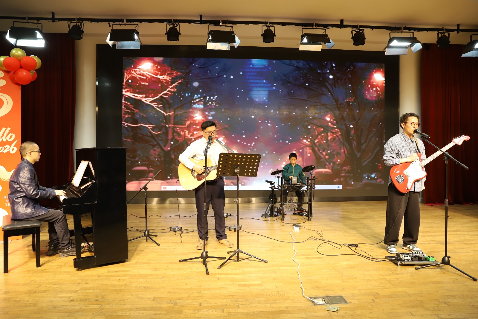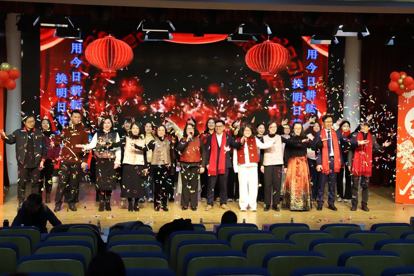 最后,三校区校级领导与教师代表同台唱响《相亲相爱》,温馨的歌声传递出实小集团一家人的浓浓情谊。随着缤纷礼炮的渲染,活动圆满落幕。