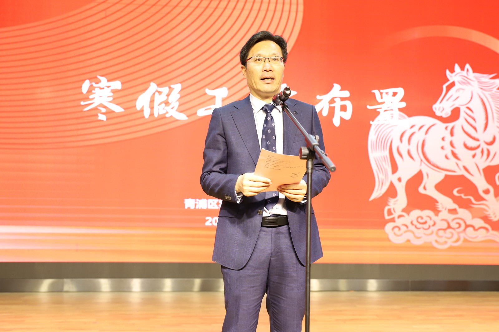 随后,御澜湾学校校长顾文荣为集团三校全体教职工布置寒假工作,他结合集团发展实际,针对寒假期间各校及各处室的工作作出详细部署和说明,明确各校及各处室需统筹推进各项工作,扎实做好学生寒假生活管理、教职工专业研修、校园安全保障等事宜,同时着重强调全体教职工要严守廉洁自律、出行报备等纪律要求。顾校长还强调,2026年是“十五五”开局之年,集团将聚焦优质均衡发展,通过深化教学改革、加强师资建设、推进集团化办学创新、强化党建引领,凝聚合力推动集团教育高质量发展。顾校长的悉心叮嘱与殷切期望,既为大家度过安全、充实、有意义的寒假指明了方向,也为集团新学期发展锚定了前行目标。