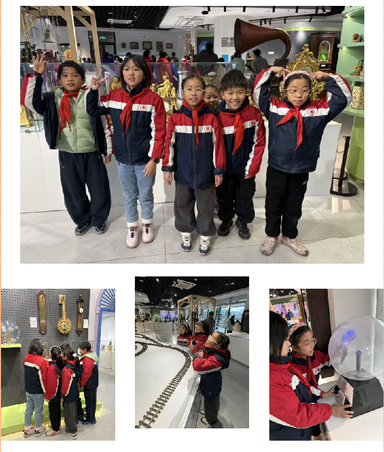 四(6)中队蓝天小队打卡安亭时钟博物馆,开启一场“时间的探索之旅”。队员们观赏世界各地、不同年代的塔钟、摆钟、艺术装饰钟等藏品,了解中外制钟历史、机械原理及地域文化差异;在互动体验区亲手操作骨牌钟、滚球钟等趣味时钟,直观感受计时机械的运作奥秘,还观摩了钟表修复工艺展示。边看边学、边体验边交流,队员们在趣味探索中收获了满满的知识。