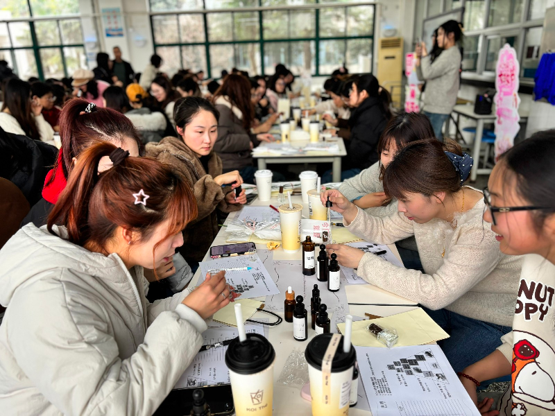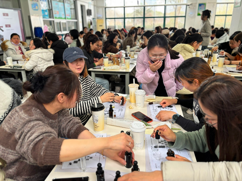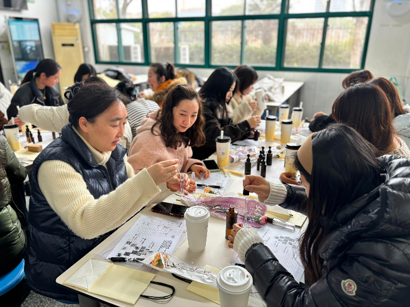 在DIY调香实践环节,老师们兴致盎然、动手创作,结合个人喜好挑选香材、配比调香,在专业指导下完成专属香氛作品。从识香、闻香到调香、定香,每一步都充满巧思与惊喜,大家在沉浸式体验中舒缓压力、愉悦身心,感受手工创作的乐趣与美好。