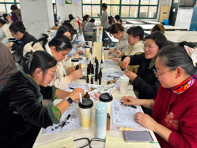 春风送暖,芳华绽放。在第116个“三八”国际劳动妇女节来临之际,为丰富女教职工精神文化生活,传递学校关怀与温暖,3月6日下午15:00,凤溪小学工会在总部底楼食堂精心举办香氛课程体验与DIY调香活动,全体女教工欢聚一堂,在馥郁芬芳中共度温馨美好的节日时光。