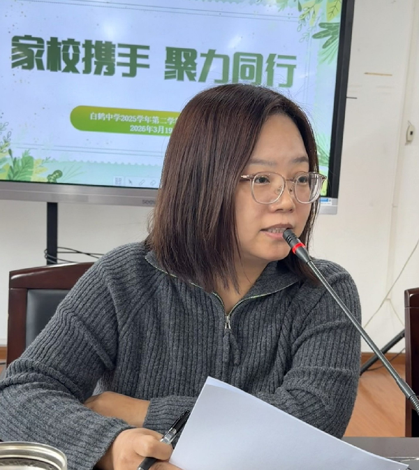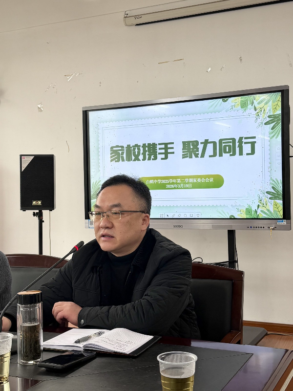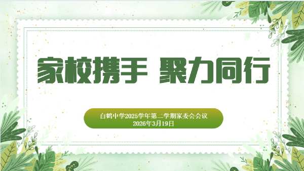 为进一步凝聚家校育人共识,畅通家校沟通渠道,携手助力学生健康成长,2026年3月19日,白鹤中学召开了2025学年第二学期家委会会议,会议围绕学校学期重点工作展开沟通交流,凝聚家校共育合力。学校副校长王妤老师、总务主任张志强老师及全体家委会成员出席本次会议。会议由团队干部单李娟老师主持。