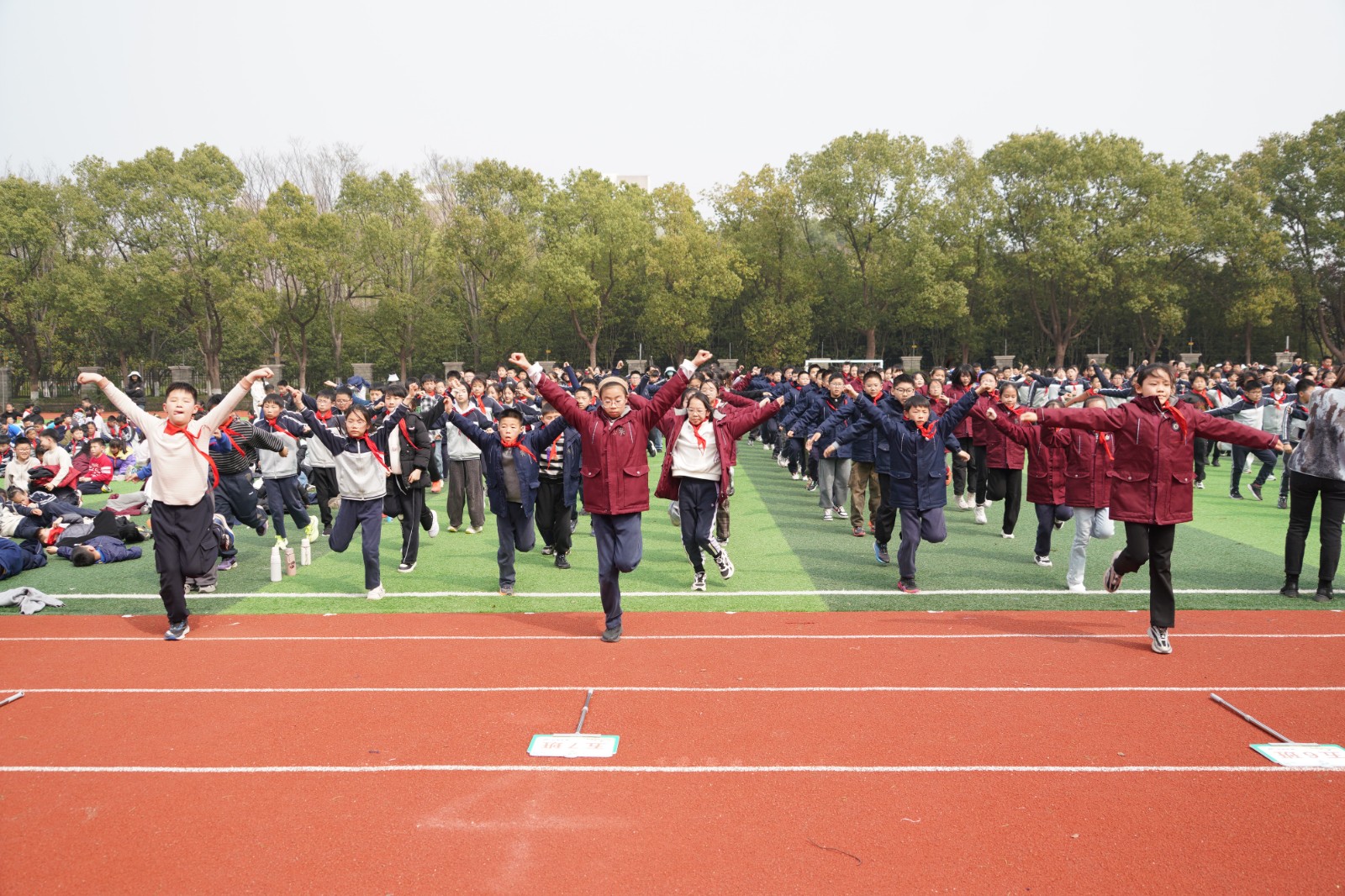 广播操的余韵未消,各年级特色竞技项目便火热开赛,操场瞬间变身欢乐的海洋,呐喊声、欢呼声、加油声此起彼伏,热闹非凡!
