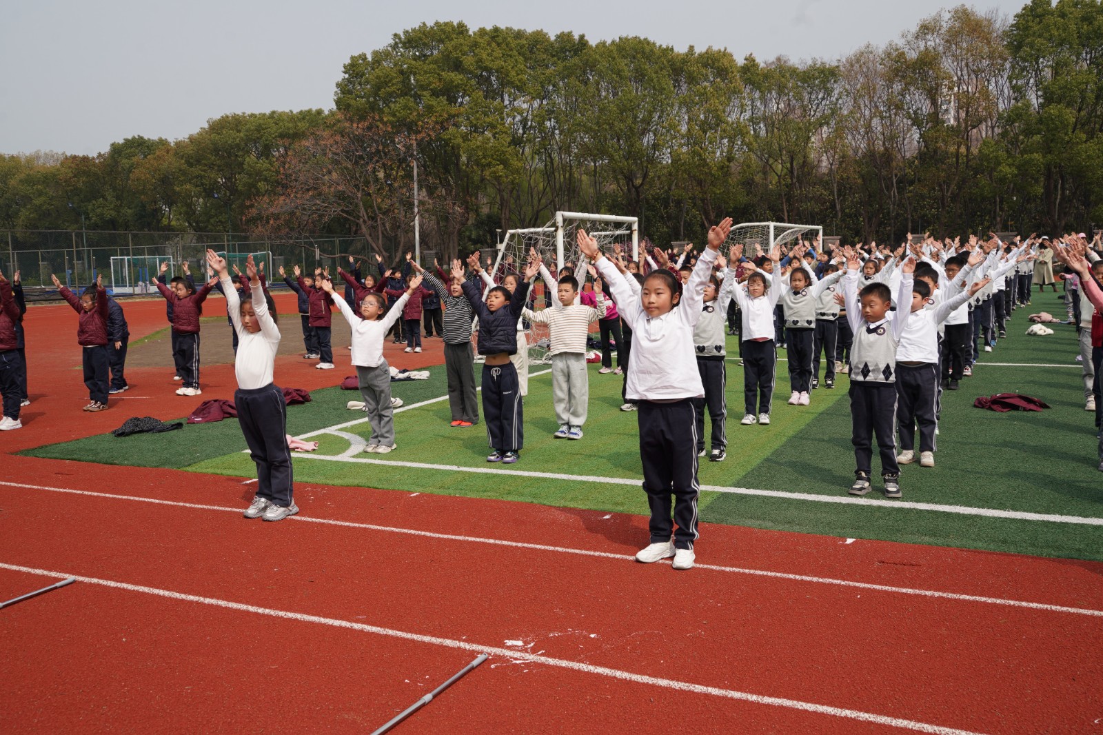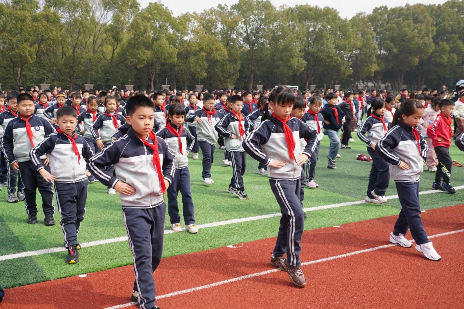 “一二三四,一二三四……”激昂的广播操音乐响起,全校广播操展示正式开启。各班同学精神抖擞地站在指定位置,目光坚定、身姿挺拔。