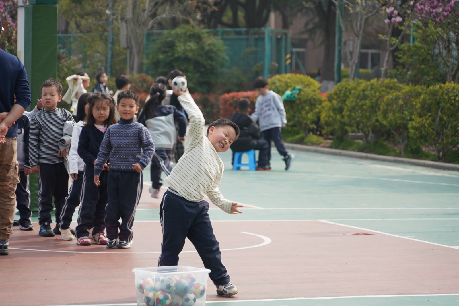 一年级·海绵球投掷:篮球场上,小选手们排起整齐的队伍,紧握海绵球,眼神专注又认真。随着老师一声令下,小球在空中划出一道道温柔又有力的弧线,每一次投掷,都是对力量的挑战;每一段距离,都是为班级争光的心意。累计的总距离,不仅是孩子们努力的见证,更凝聚着班级的集体力量。