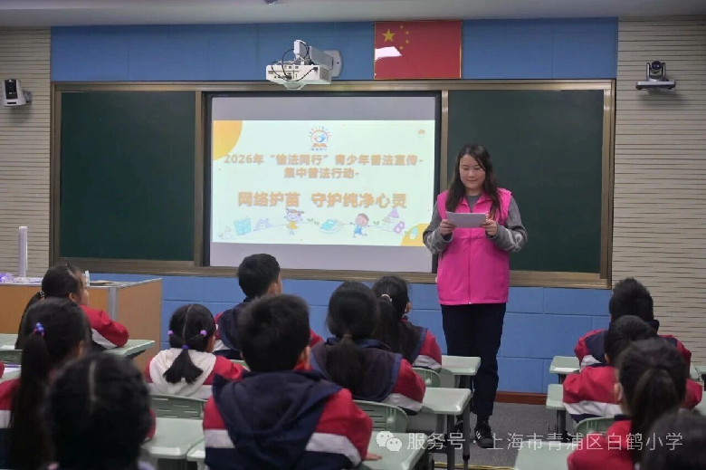 网络护苗 守护纯净心灵——青浦区白鹤小学开展“愉法同行”青少年普法宣传活动