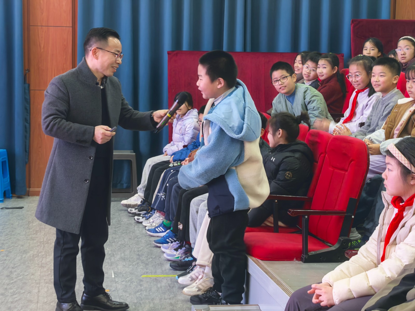 李老师结合小学生认知特点,精心准备课件,以一幅广为人知的肖像画为切入点,用一个个生动有趣的事迹,将陈云同志“坚定信仰、一心为民、实事求是、党性坚强、刻苦学习”的精神品格娓娓道来。他从陈云幼年家境贫寒、勤奋好学讲起,一直延伸到其兢兢业业为劳苦大众奉献终身的壮阔人生。课堂上,李老师不时联系学生当下的学习生活提出启发性问题,并走到台下与孩子们亲切互动,让全体毕业生在轻松而深刻的氛围中走近伟人、了解伟人,接受了一场入脑入心的“四史”教育。