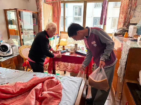 2025年10月28日中午,初等职校党团队联合朱家角镇胜利街居委会共同开展了“温情重阳·敬老助老”主题活动,以劳动成果传递关怀,以青春热情温暖社区,为高龄老人们送去节日的祝福与问候。本次活动不仅弘扬了“尊老、敬老、爱老”的中华传统美德,也让学生在实践中体会到劳动的价值与奉献的意义。