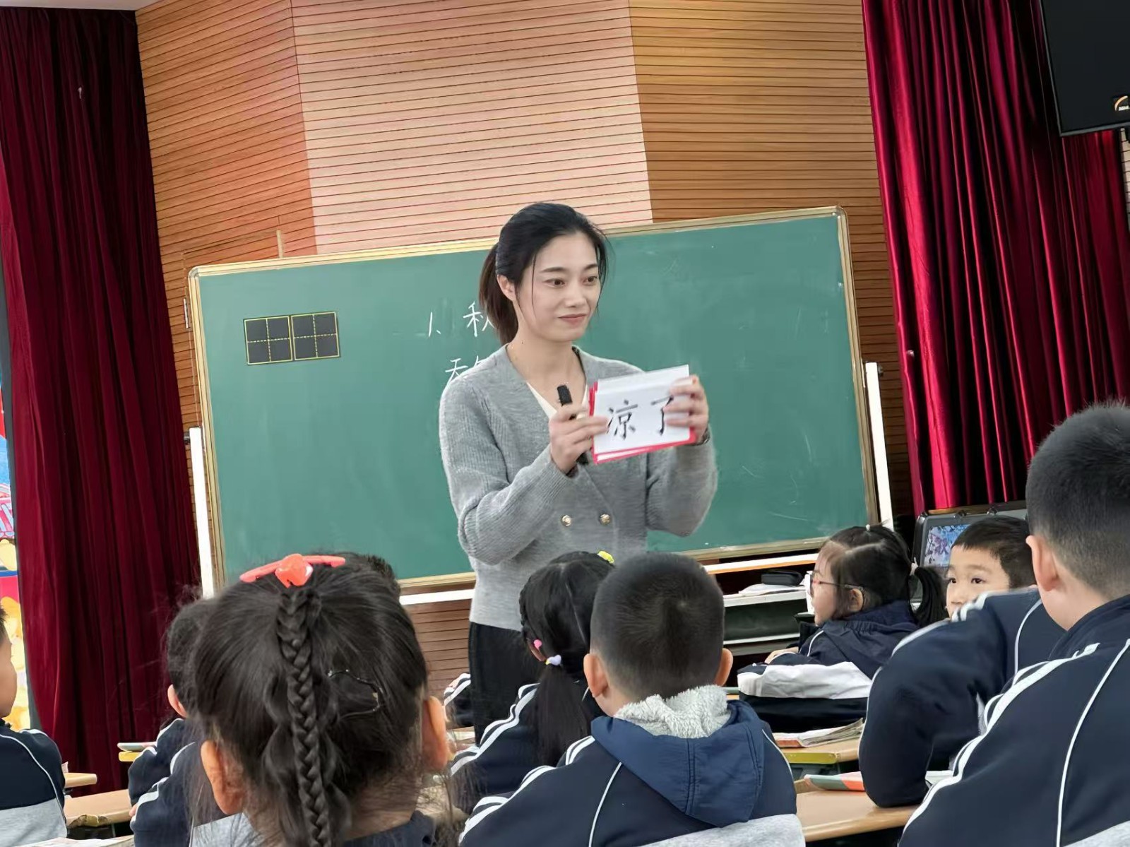 豫英小学的张翠亚老师作总结点评。张老师称赞朱老师的课堂:以复习词语、偏旁及秋景变化导入,降低难度;写字指导按“比较异同—明确关键笔画—示范+评价”推进,契合低段书写需求;朗读设计借视频、图片、句式比较,实现“读准—读懂—读美”梯度提升;课堂学用结合,通过秋景图片引导学生联系生活,仿课文句式说桂花、柿子等秋景,让语文贴近生活,自然激发学生对秋天的喜爱之情。